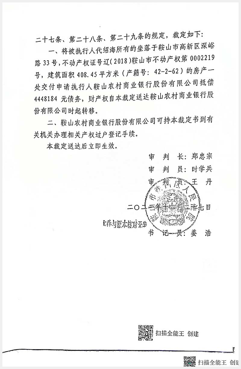 名稱:鞍山市高新區(qū)深峪路33號(hào)房產(chǎn) 面積:408.45㎡ 瀏覽次數(shù):440