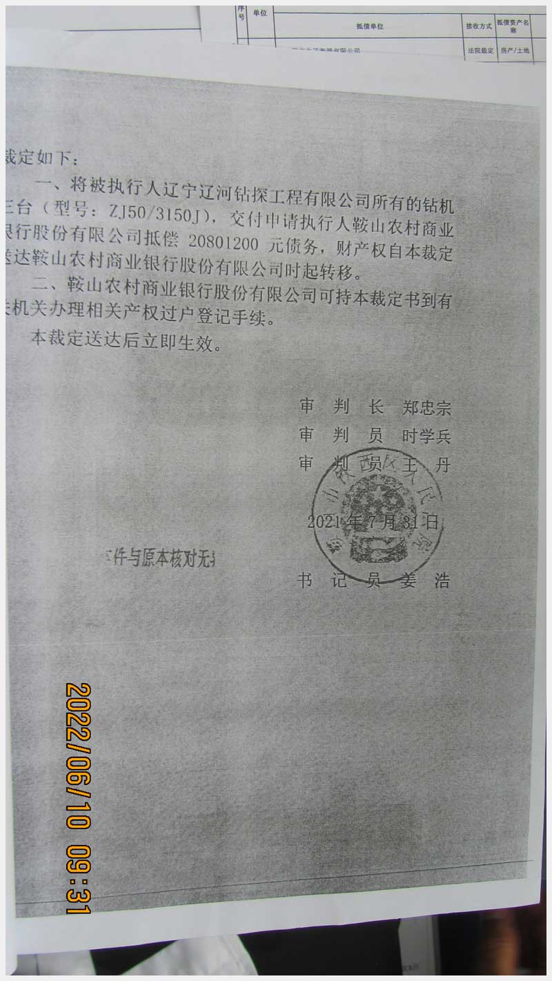 名稱:遼寧遼河鉆探工程有限公司機(jī)器設(shè)備 面積:11臺(套) 瀏覽次數(shù):1364