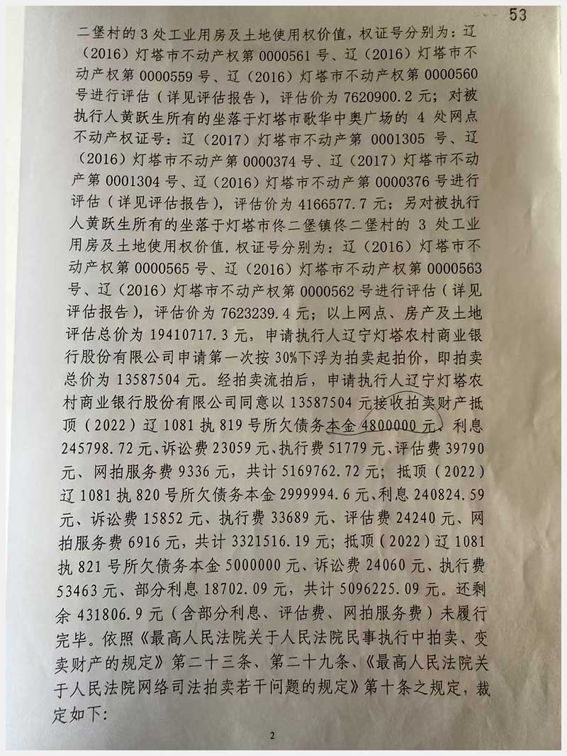 名稱:燈塔市佟二堡鎮(zhèn)佟二堡村房產(chǎn)及土地使用權 面積:房產(chǎn):1954.46㎡;土地:1720.13㎡ 瀏覽次數(shù):160
