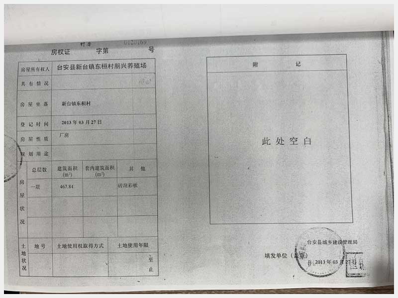 8號(hào) 新臺(tái)鎮(zhèn)東桓村朋興養(yǎng)殖場(chǎng)15處房產(chǎn)及土地