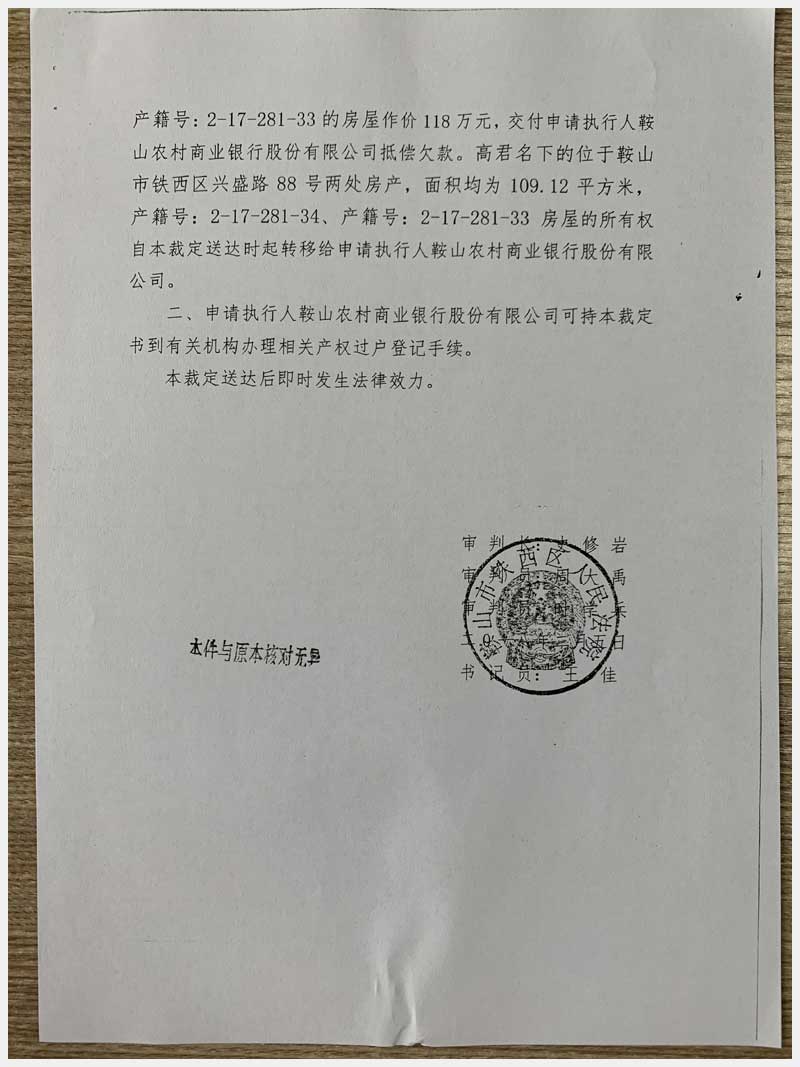 名稱:鞍山市鐵西區(qū)興盛路88號2處房產(chǎn) 面積:109.12㎡/每處 瀏覽次數(shù):1803