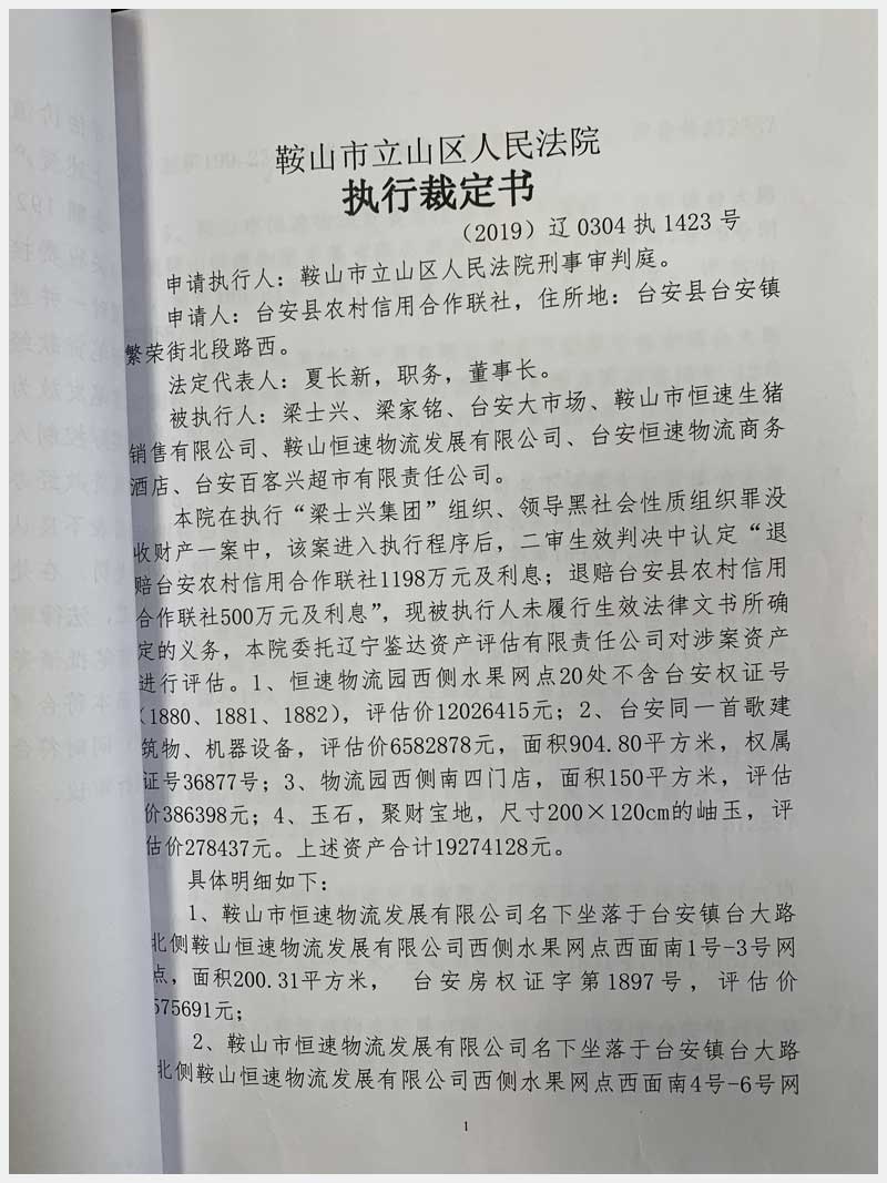 地址:臺(tái)安鎮(zhèn)臺(tái)大路北側(cè)鞍山恒速物流發(fā)展有限公司 標(biāo)的號(hào):71