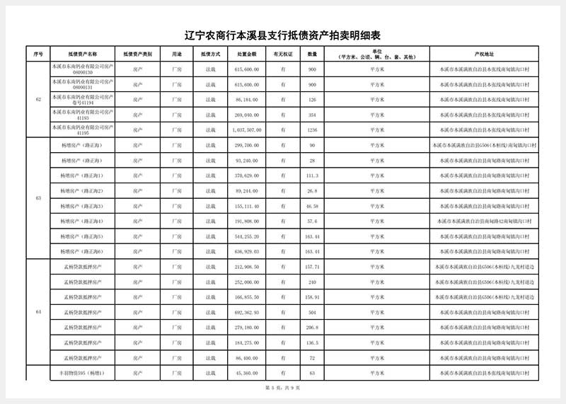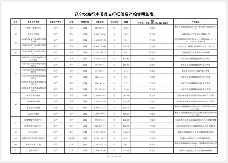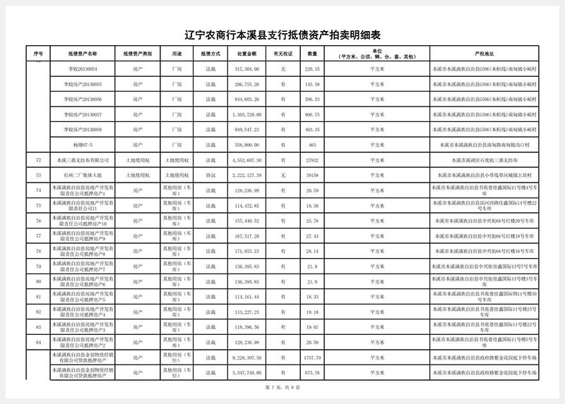 南芬地區的抵債資產拍賣目錄請至本網站首頁查詢。