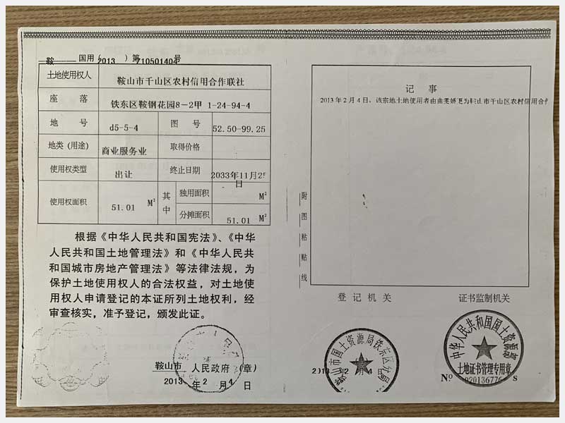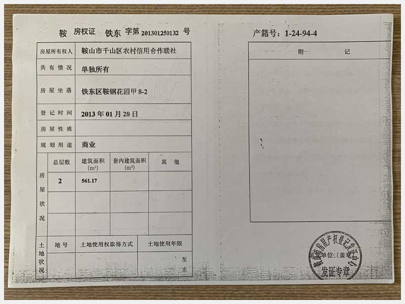 地址:鞍山市鐵東區(qū)鞍鋼花園 標(biāo)的號(hào):68