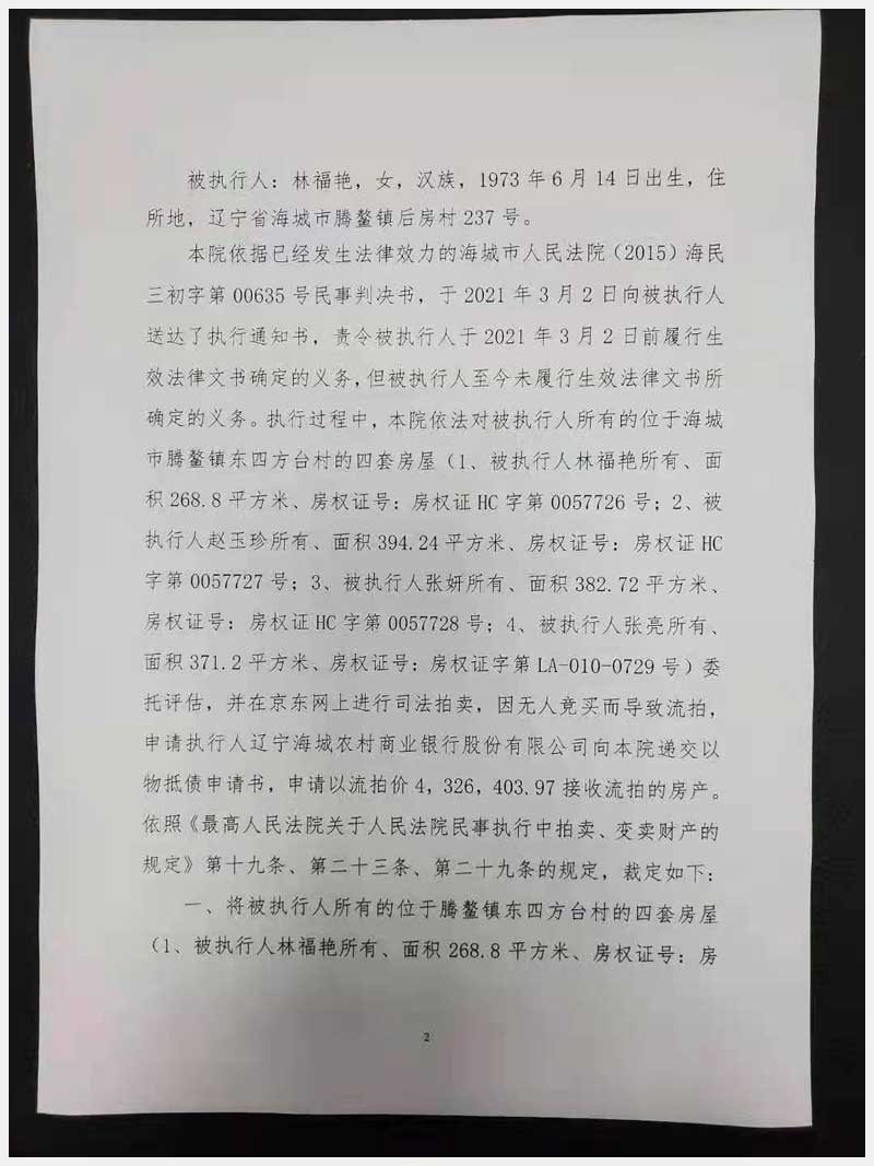 地址:海城市東四方臺(tái)鎮(zhèn)東四方臺(tái)居委會(huì) 標(biāo)的號(hào):155
