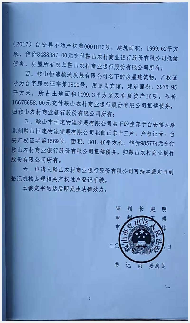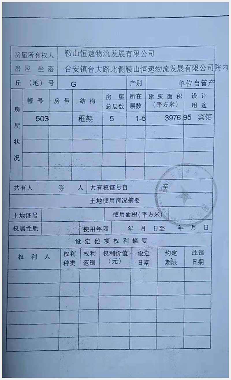 70號(hào) 臺(tái)安鎮(zhèn)臺(tái)大路北側(cè)鞍山恒速物流發(fā)展有限公司院內(nèi)房產(chǎn)