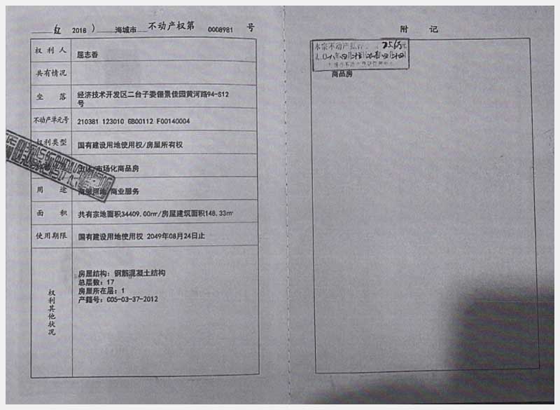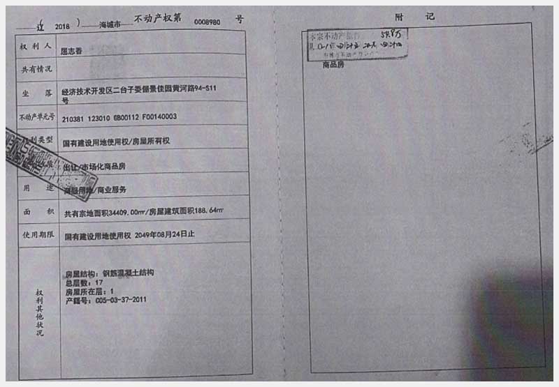 地址:海城經(jīng)濟(jì)技術(shù)開發(fā)區(qū)二臺(tái)子委儷景佳園 標(biāo)的號(hào):186-1