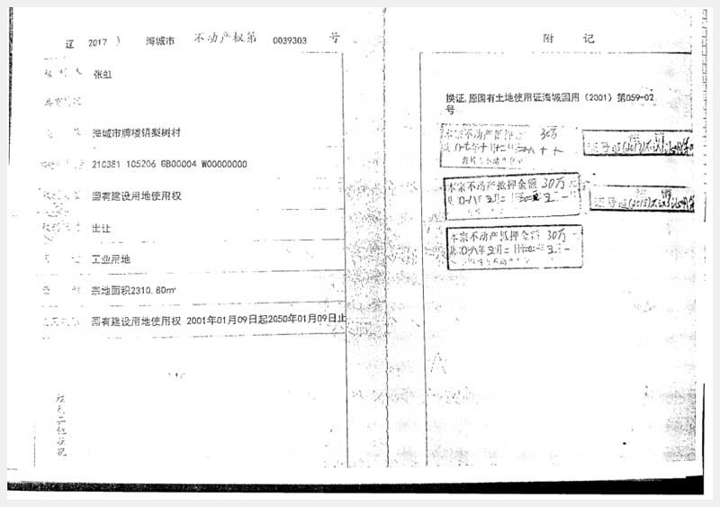 194號 海城市牌樓鎮(zhèn)工業(yè)區(qū)房產(chǎn)及梨樹村土地使用權