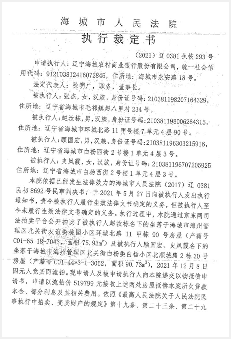 195號(hào) 海城市海州管理區(qū)北關(guān)街白楊委白楊小區(qū)北順城路2棟3單元5層30號(hào)房產(chǎn)