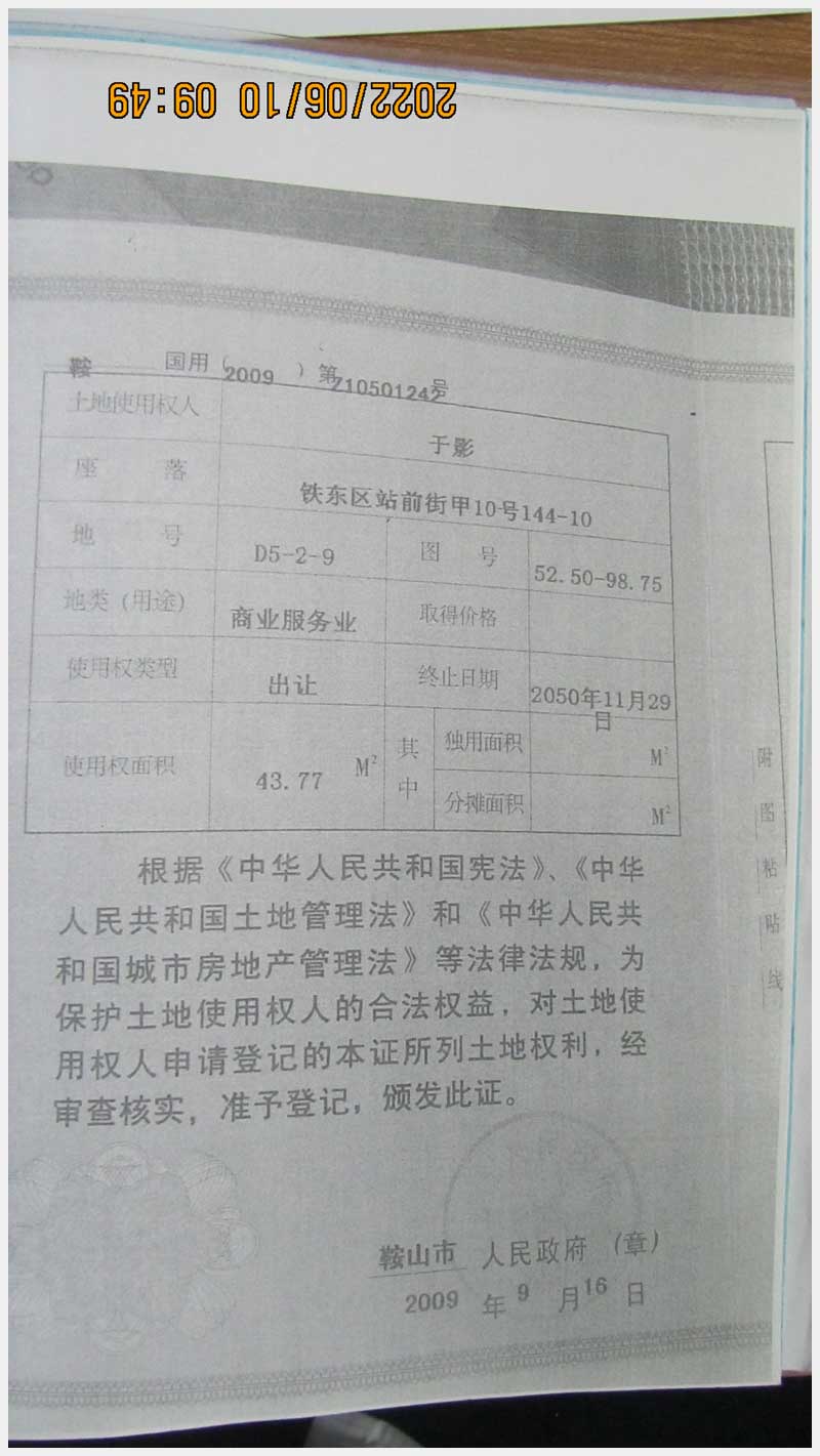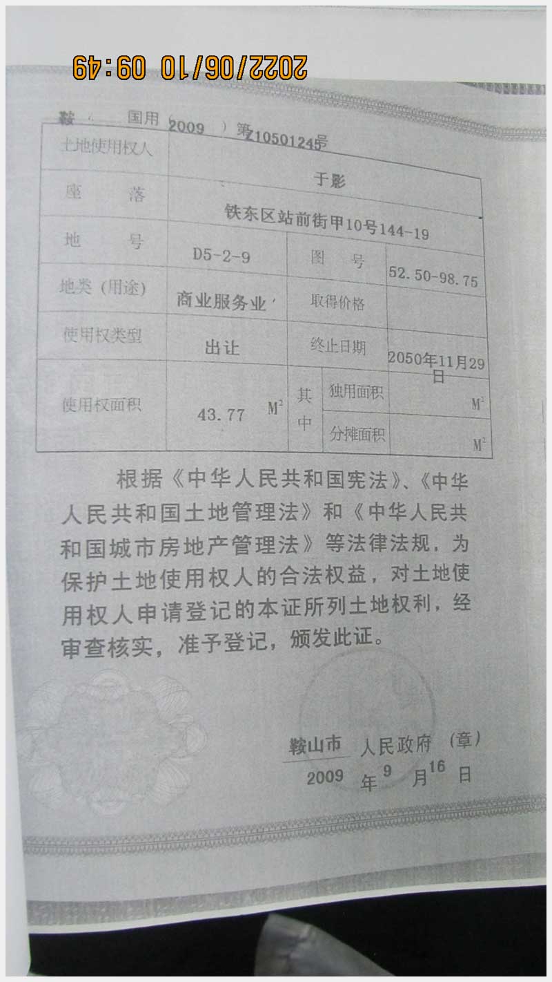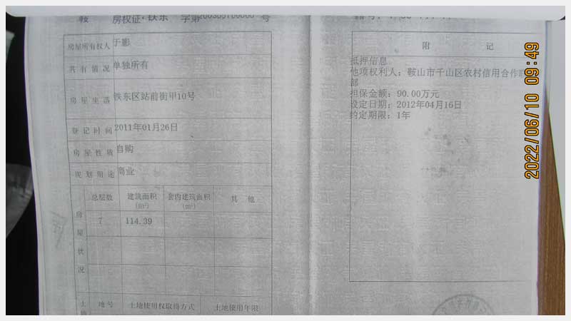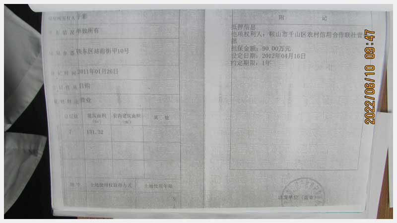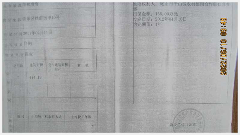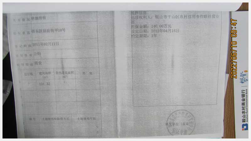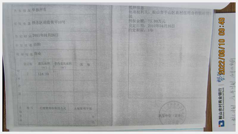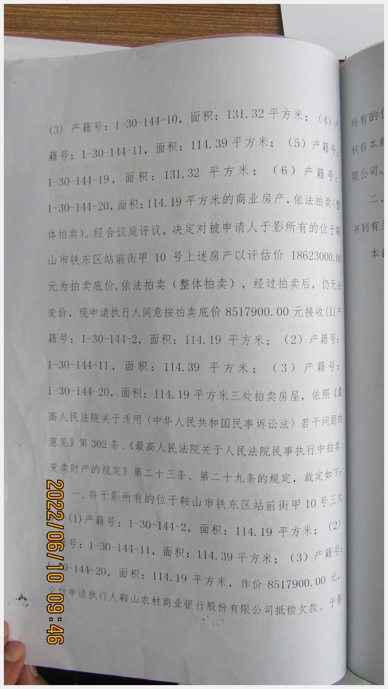名稱:鞍山市鐵東區(qū)站前街甲10號房產(chǎn) 面積:342.77㎡ 瀏覽次數(shù):1551