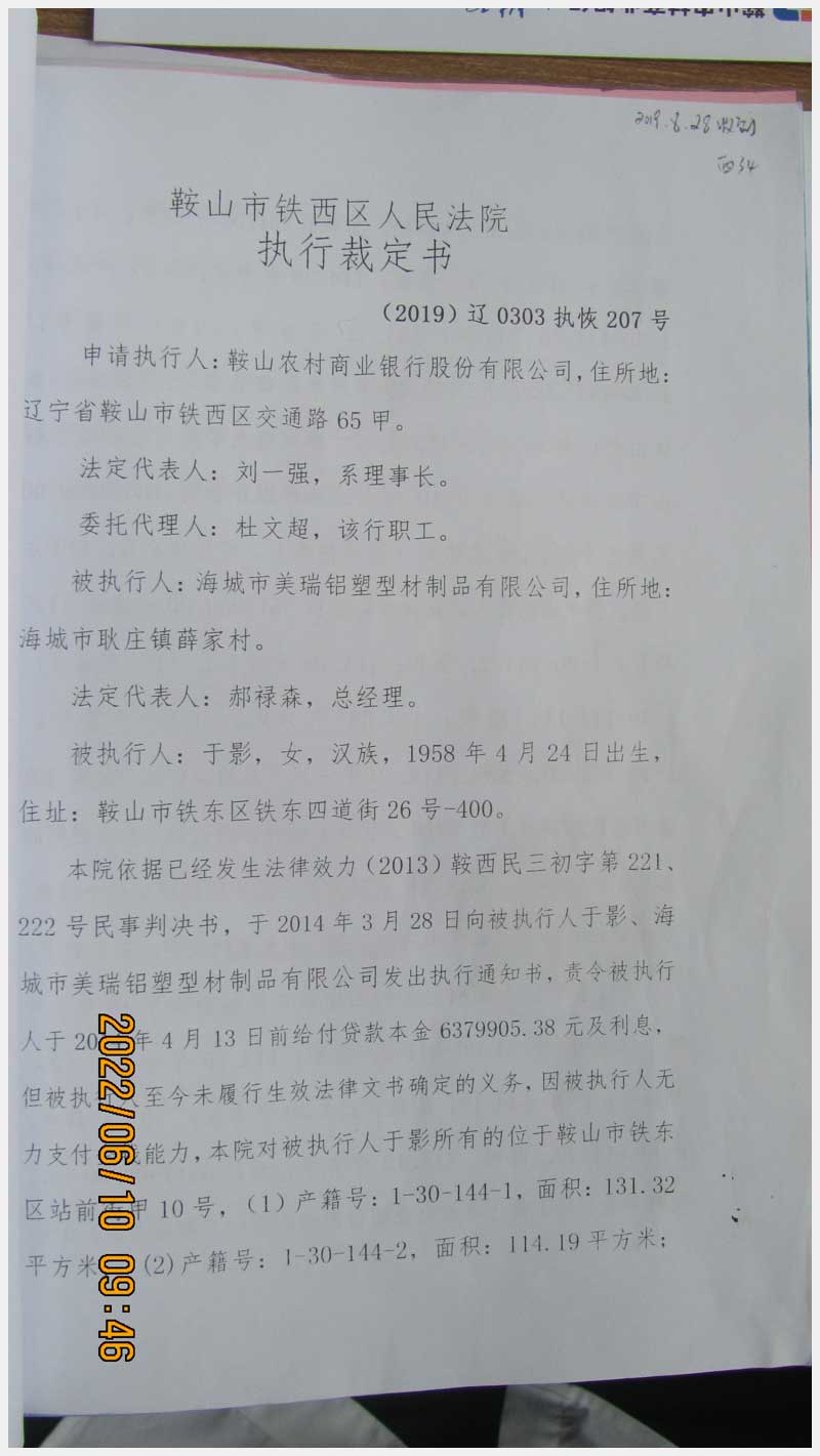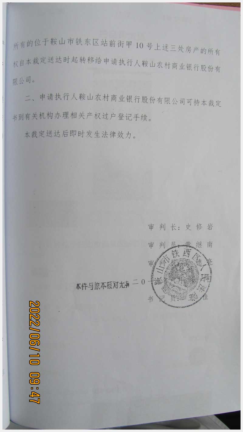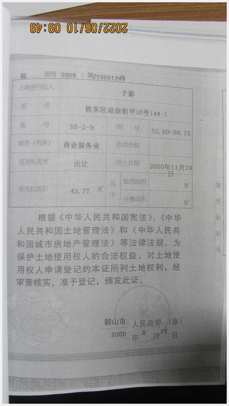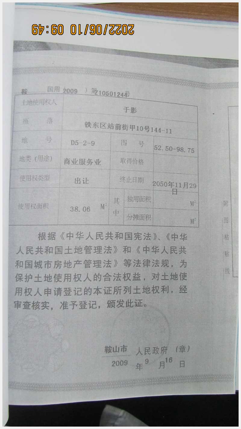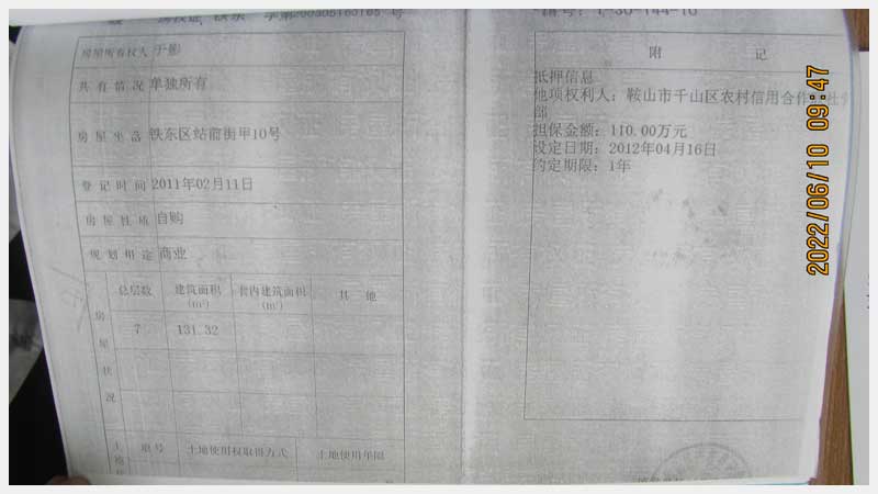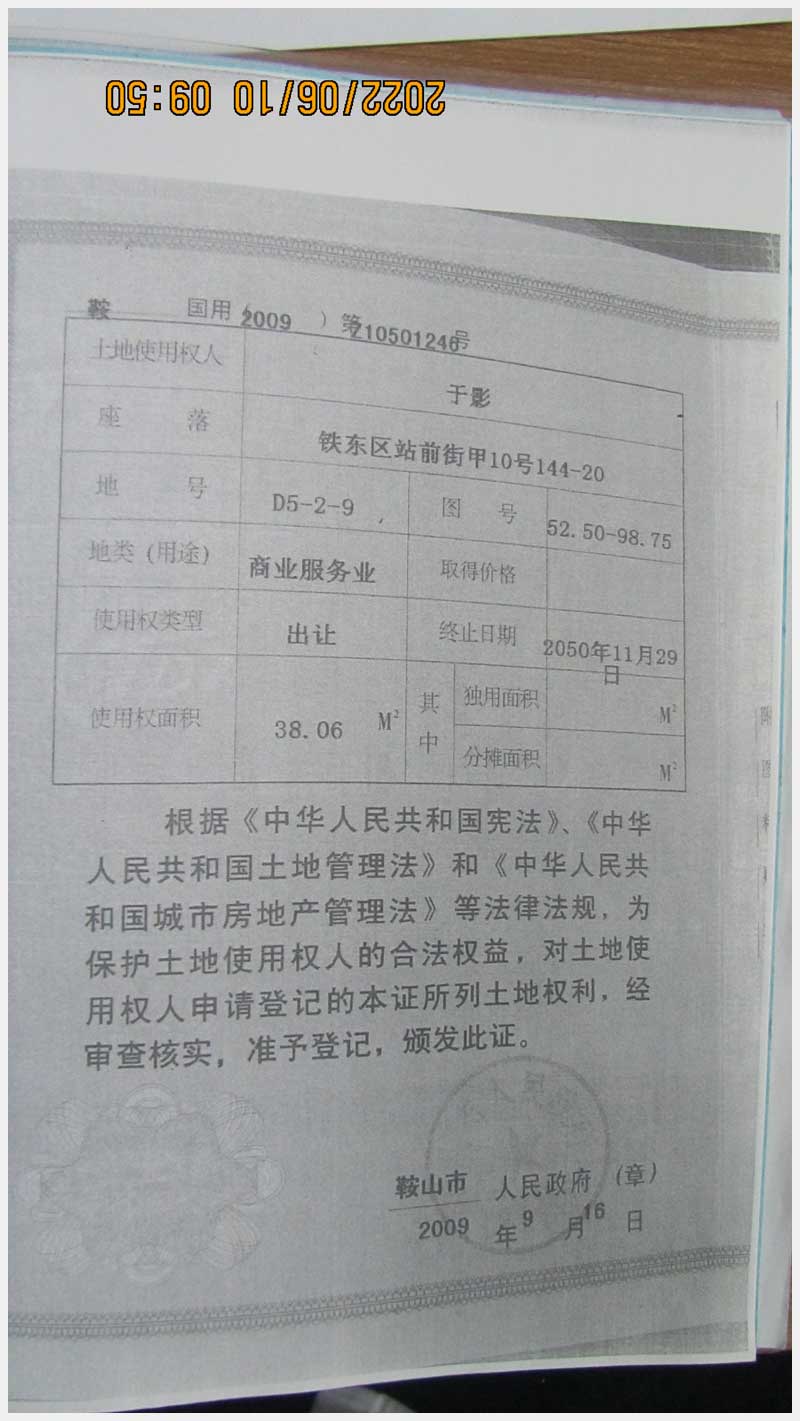 名稱:鞍山市鐵東區(qū)站前街甲10號房產(chǎn) 面積:342.77㎡ 瀏覽次數(shù):1551