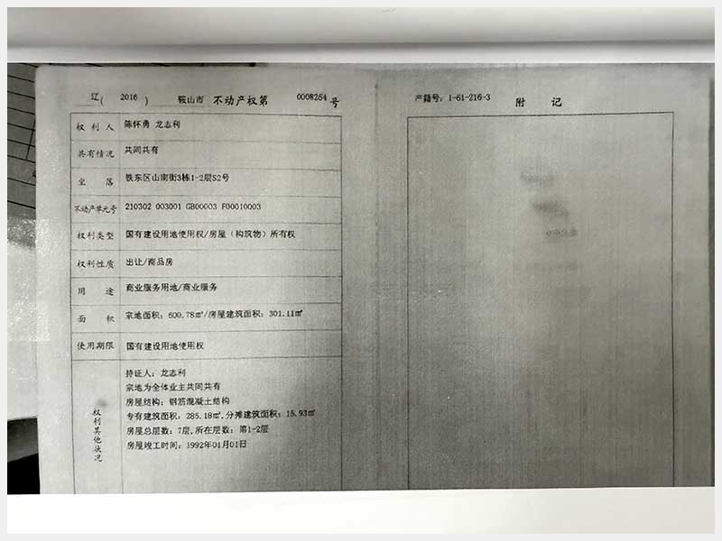 地址:鞍山市鐵東區(qū)山南街3棟 標(biāo)的號(hào):212