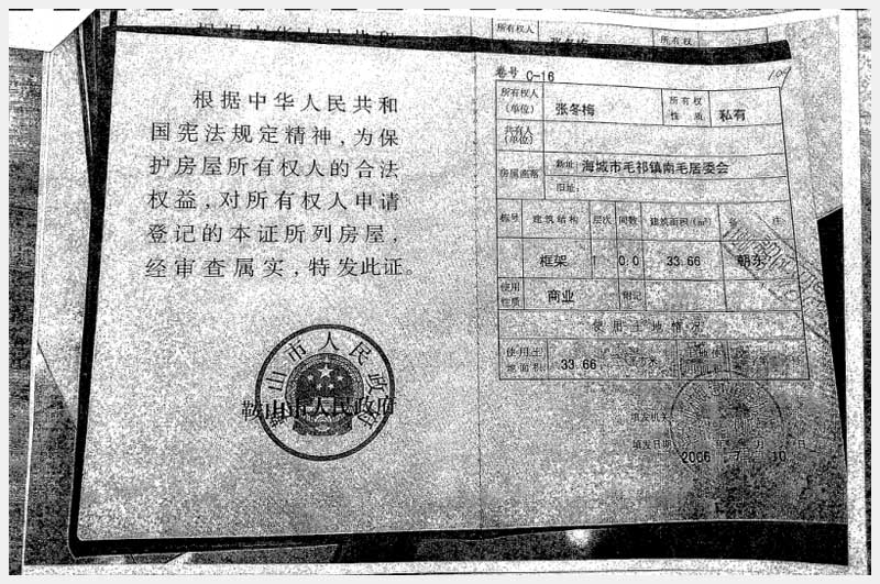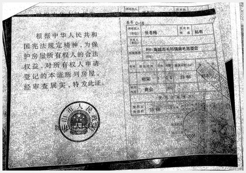 地址:海城市毛祁鎮(zhèn)小河居委會(huì) 標(biāo)的號(hào):216-2