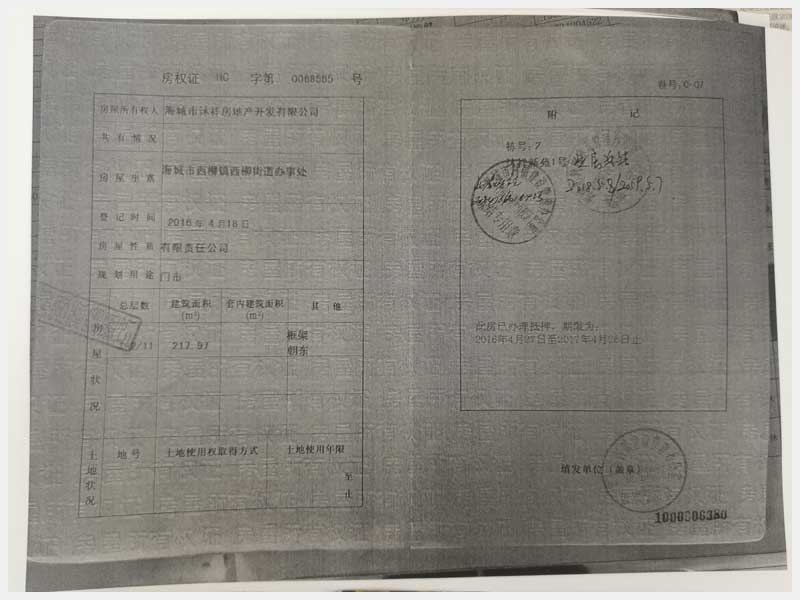 地址:海城市西柳鎮(zhèn)西柳街道辦事處 標的號:222
