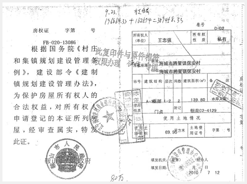 地址:海城市騰鰲鎮(zhèn)保安村 標(biāo)的號:225-7