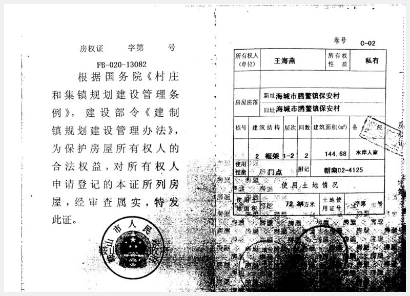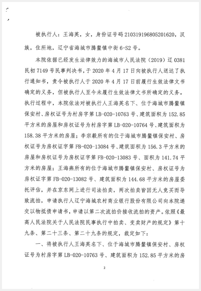 229號(hào) 海城市騰鰲鎮(zhèn)保安村5處房產(chǎn)