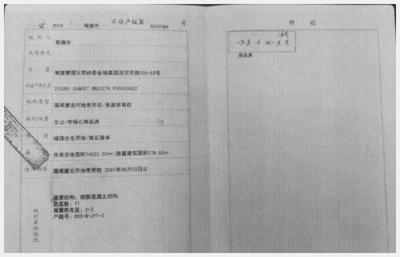 名稱:海城市響堂管理區(qū)荒嶺委金域嘉園濱河西路255-S1、S2、S3號(hào)房產(chǎn) 面積:有證:538.22㎡;無(wú)證:223㎡ 瀏覽次數(shù):1001