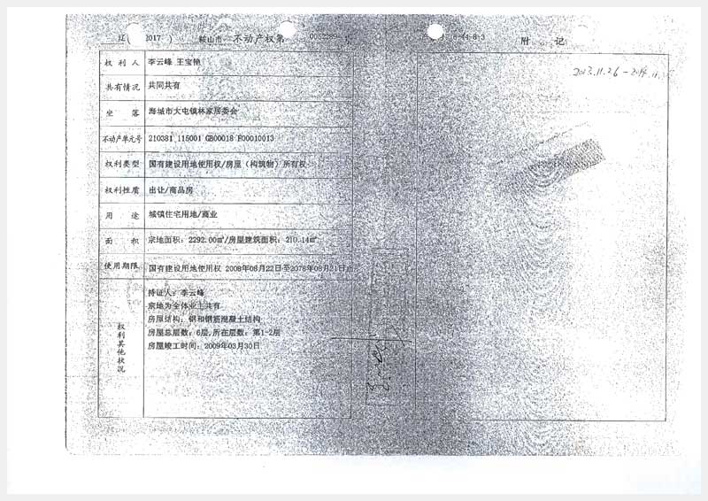 242號(hào) 海城市王石鎮(zhèn)代千村圣源山莊房產(chǎn)