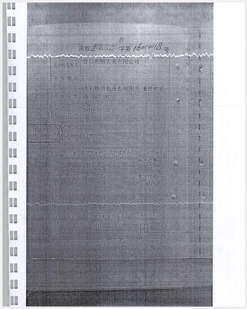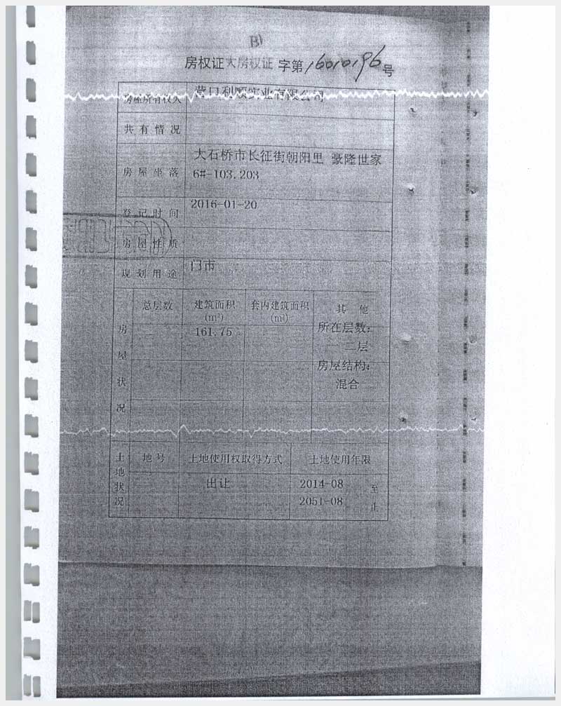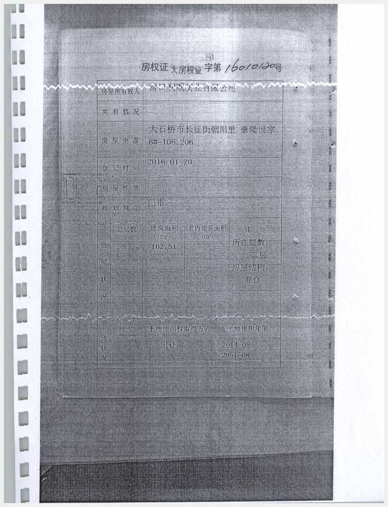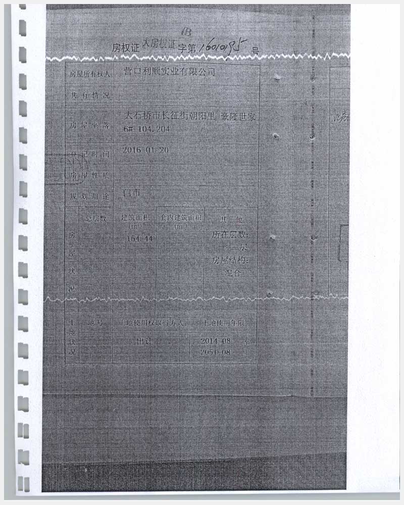 8號(hào) 大石橋市長(zhǎng)征街朝陽(yáng)里豪隆世家6#6處房產(chǎn)