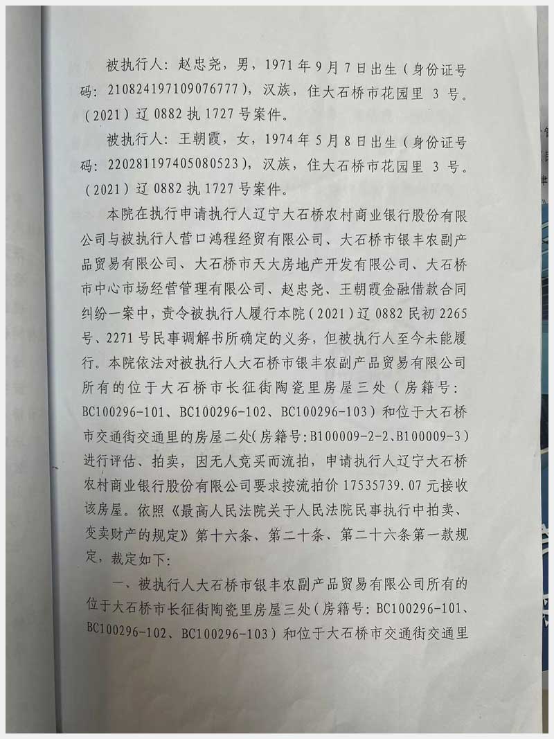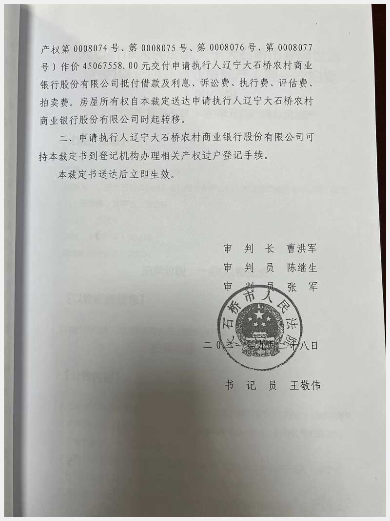 地址:大石橋市長(zhǎng)征街朝陽(yáng)里豪隆世家 標(biāo)的號(hào):8