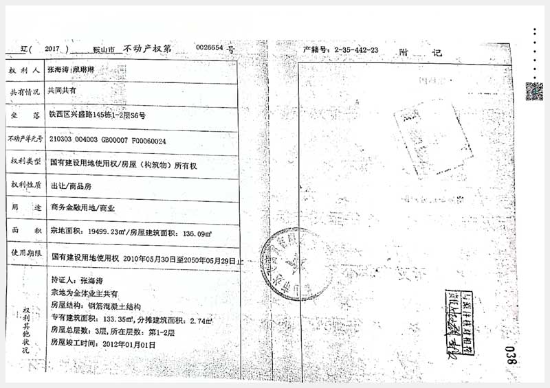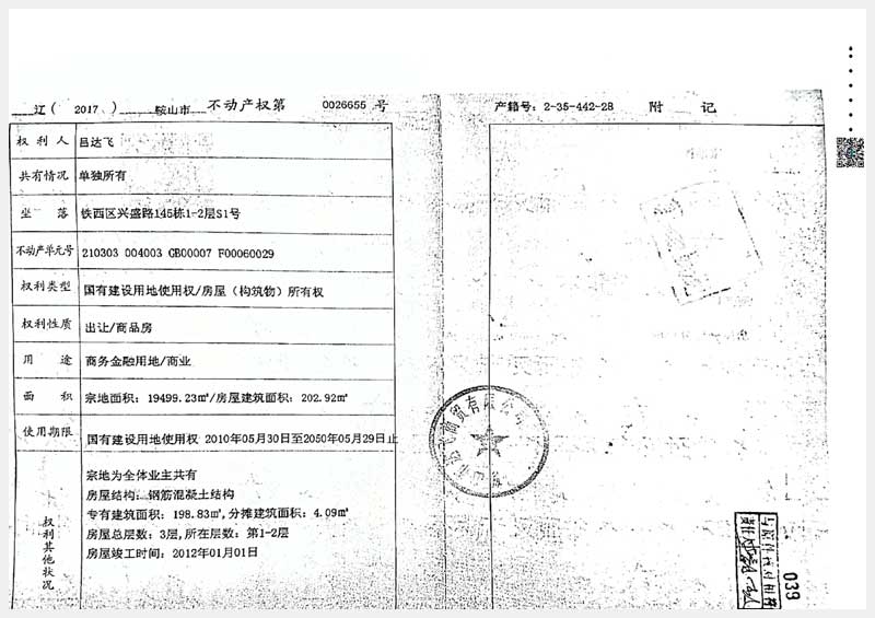 名稱:鞍山市鐵西區(qū)興盛路143棟、145棟6處房產(chǎn) 面積:1490.21㎡ 瀏覽次數(shù):1289