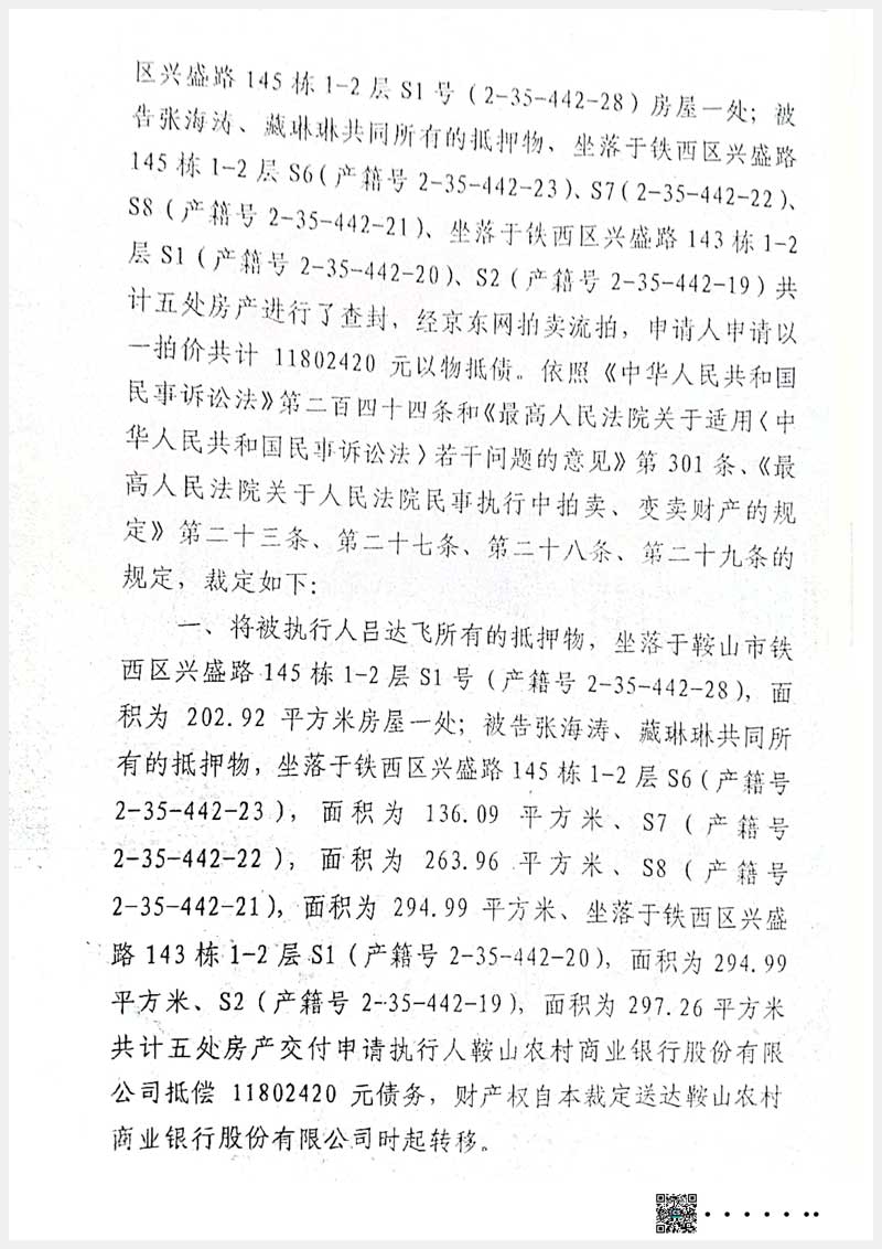 地址:鞍山市鐵西區(qū)興盛路143棟、145棟 標(biāo)的號:97