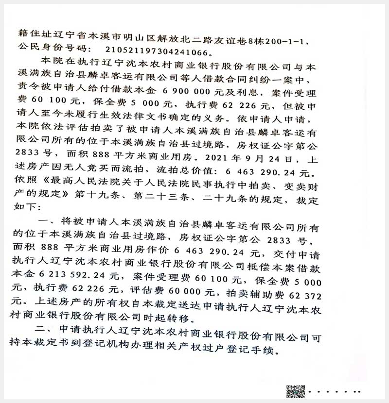 地址:本溪滿族自治縣過(guò)境路 標(biāo)的號(hào):111