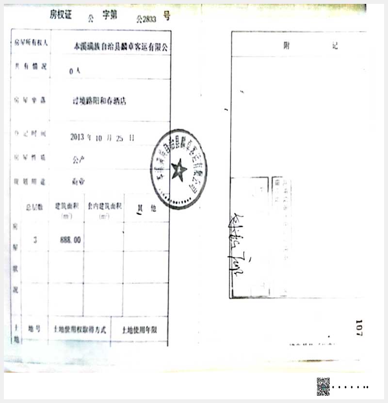 111號(hào) 本溪滿族自治縣過(guò)境路陽(yáng)和春酒店房產(chǎn)