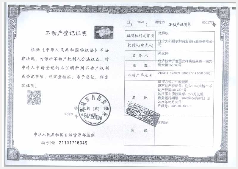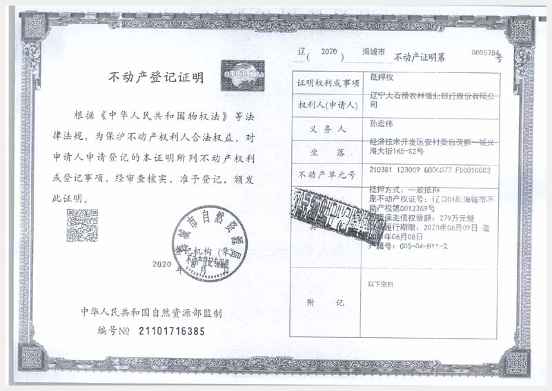 地址:海城市經(jīng)濟技術開發(fā)區(qū)安村委后英第一城 標的號:16