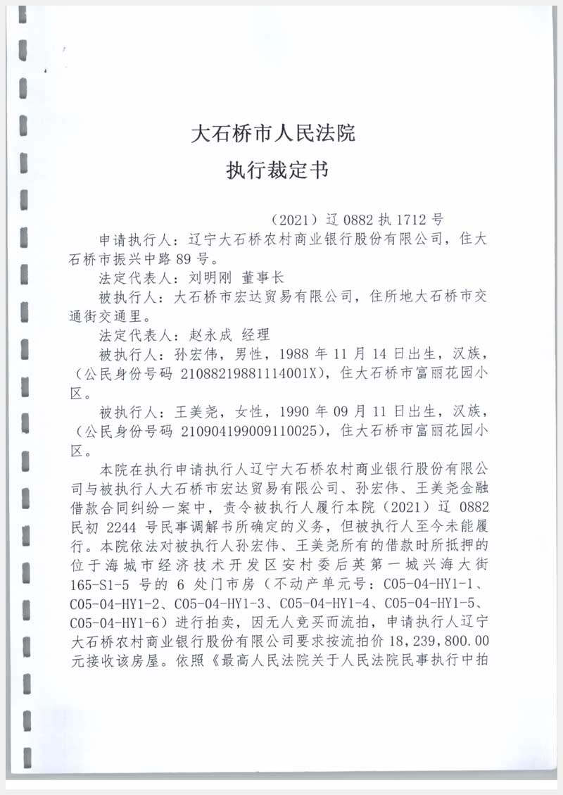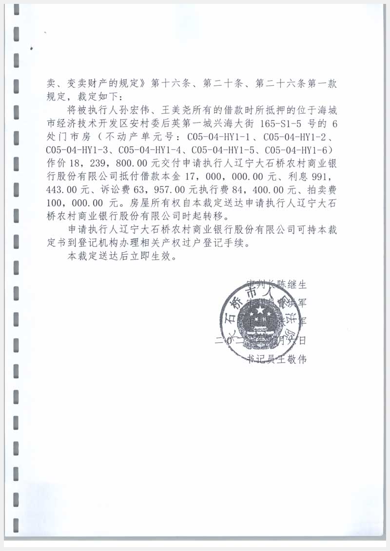 16號 海城市經(jīng)濟技術開發(fā)區(qū)安村委后英第一城興海大街165-S1-6號6處房產(chǎn)