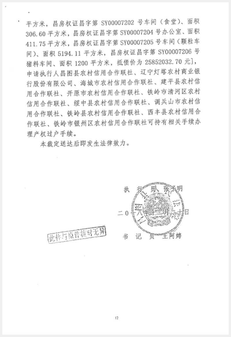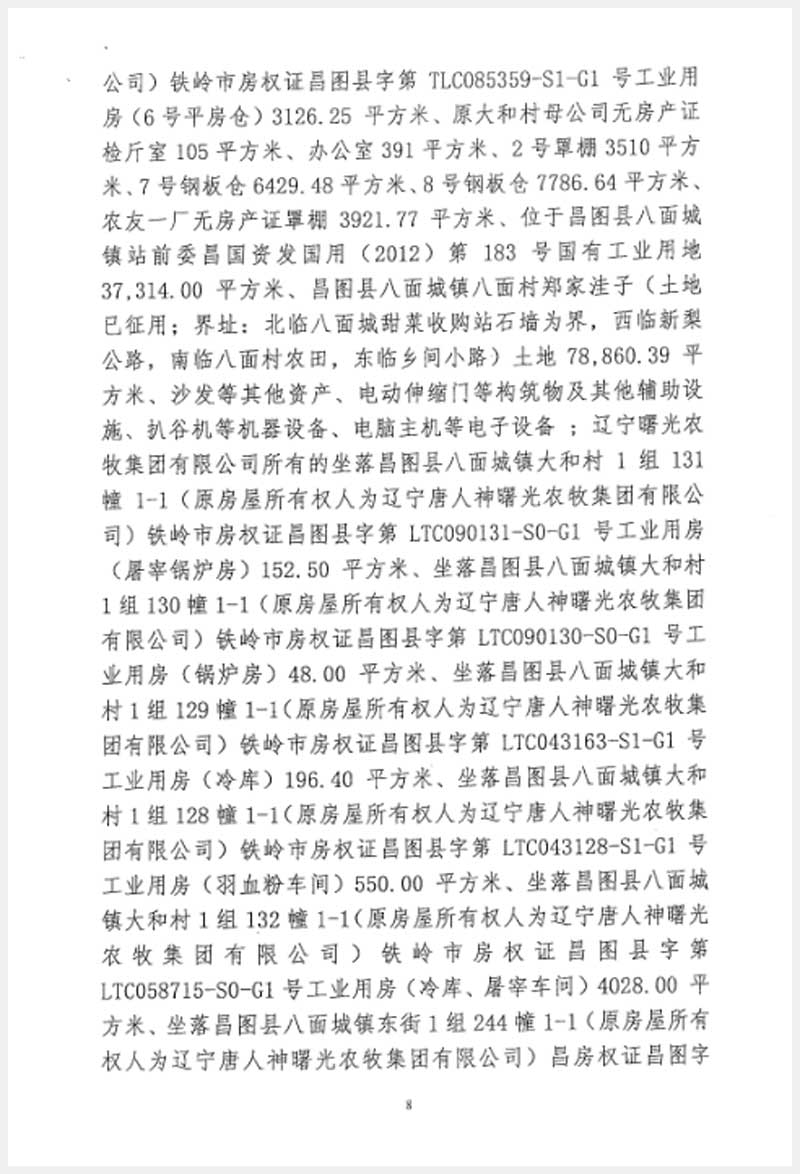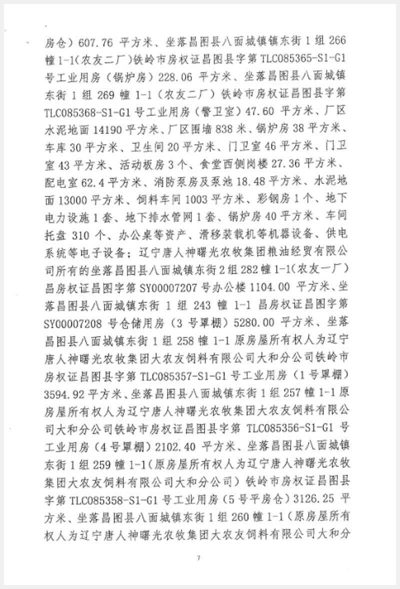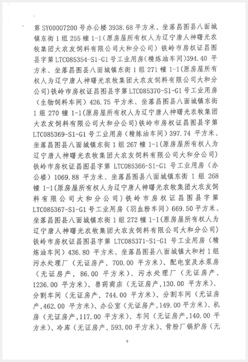 246號(hào) 遼寧唐人神曙光農(nóng)牧集團(tuán)大友飼料有限公司房產(chǎn)及設(shè)備