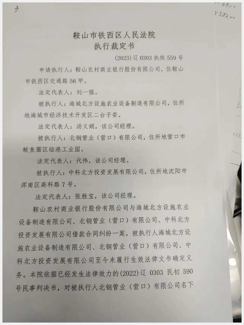 101號(hào) 北鋼管業(yè)(營(yíng)口)有限公司所屬的機(jī)器設(shè)備
