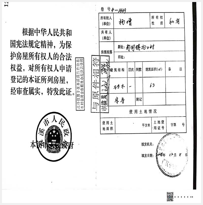 155號 本溪滿族自治縣南甸鎮(zhèn)溝口村房產(chǎn)