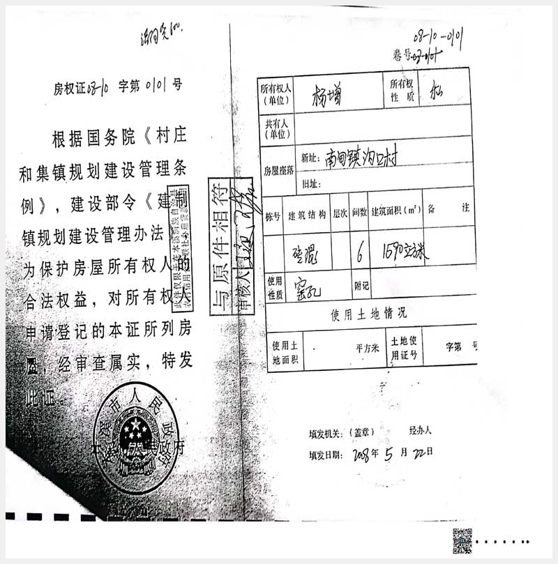 名稱:本溪滿族自治縣南甸鎮(zhèn)溝口村房產(chǎn) 面積:房產(chǎn):1296㎡;窯孔:3262m³ 瀏覽次數(shù):708
