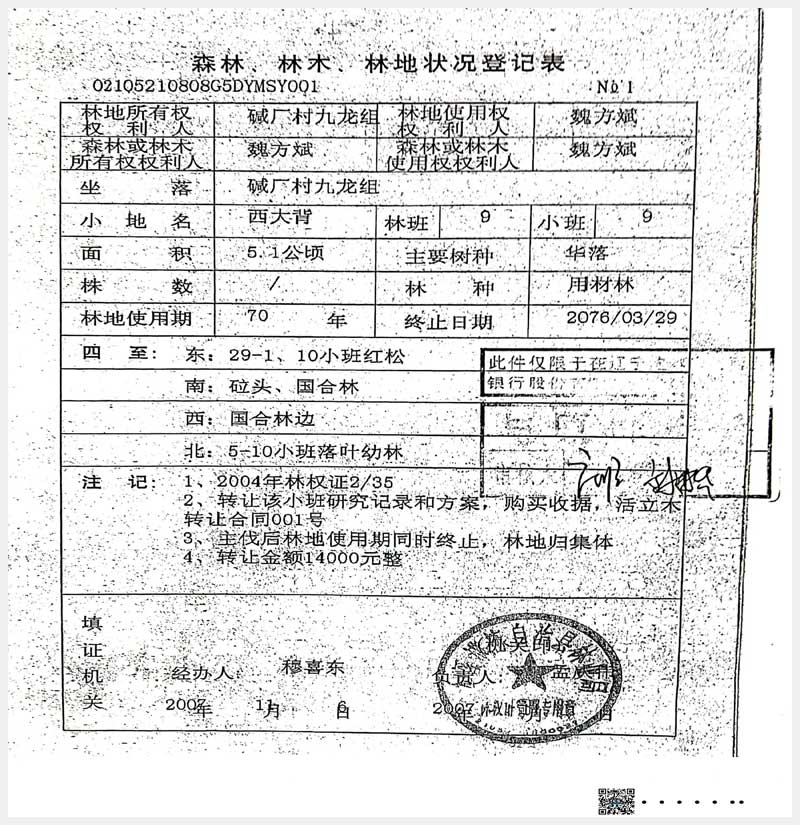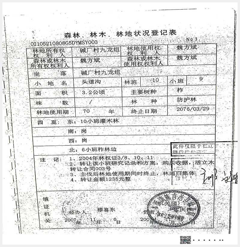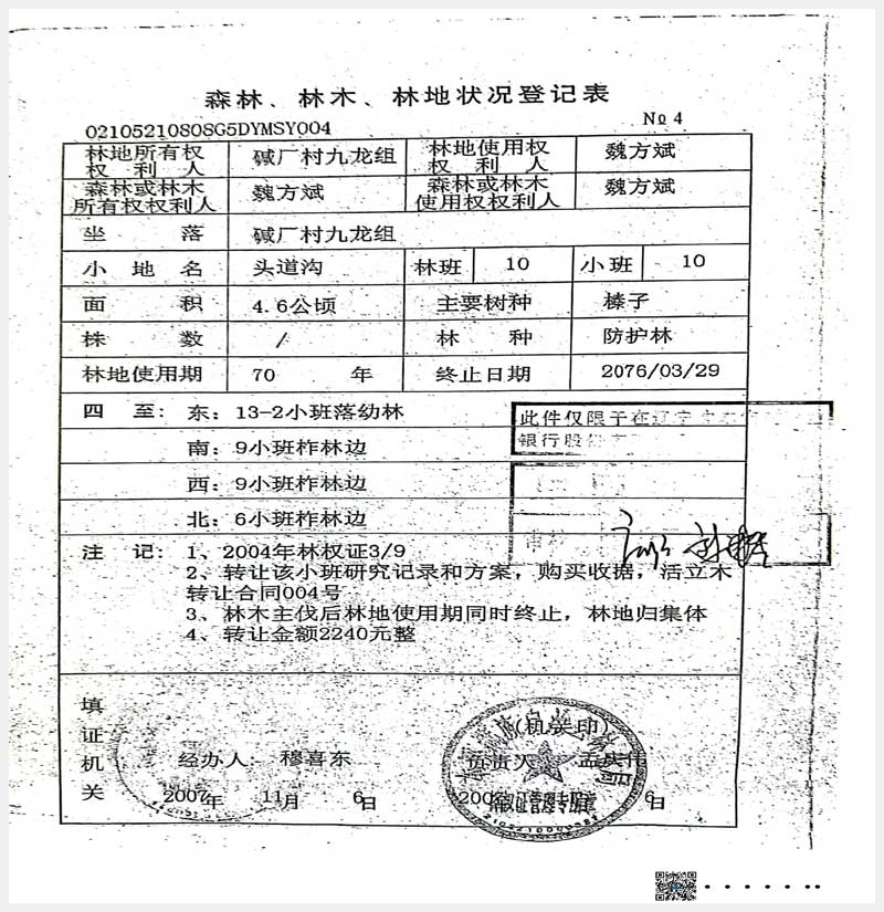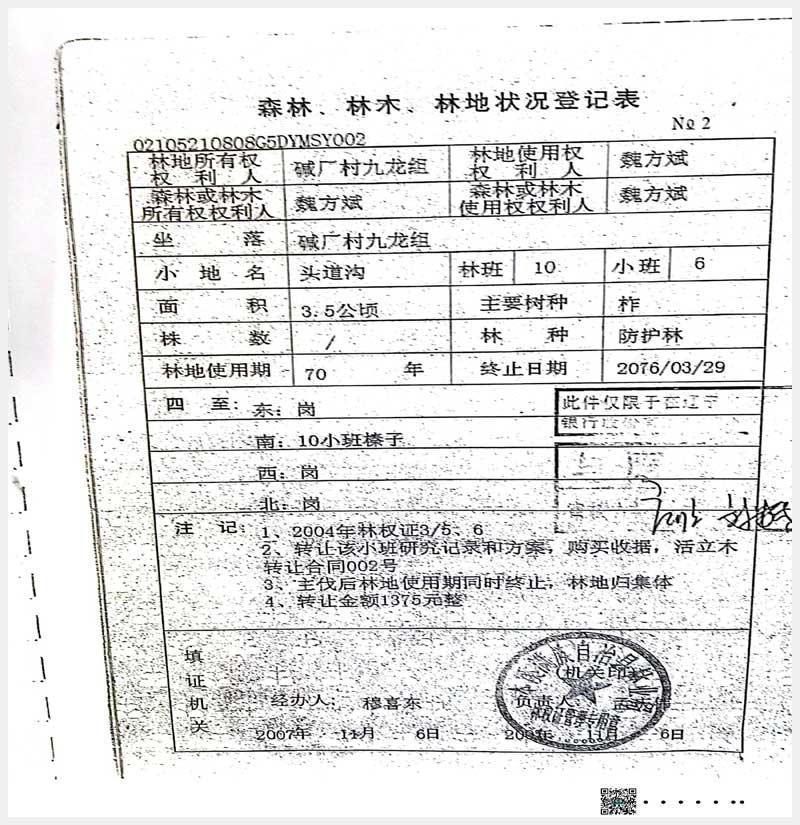 名稱:本溪滿族自治縣堿廠鎮(zhèn)九龍組林權(quán) 面積:17.6公頃 瀏覽次數(shù):783