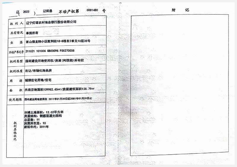 59號(hào) 遼陽(yáng)市首山鎮(zhèn)龍翔小區(qū)勝利街18棟房產(chǎn)