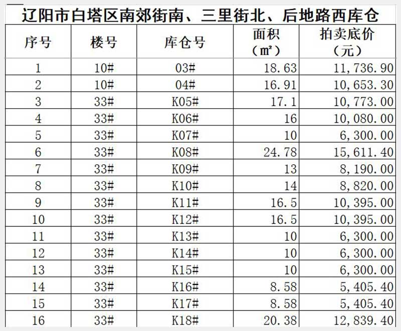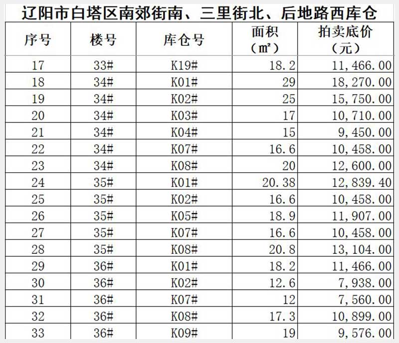 名稱:遼陽市白塔區(qū)南郊街南、三里街北、后地路西(華御世家)庫倉 面積:8.58㎡—29㎡(詳見圖表) 瀏覽次數(shù):291