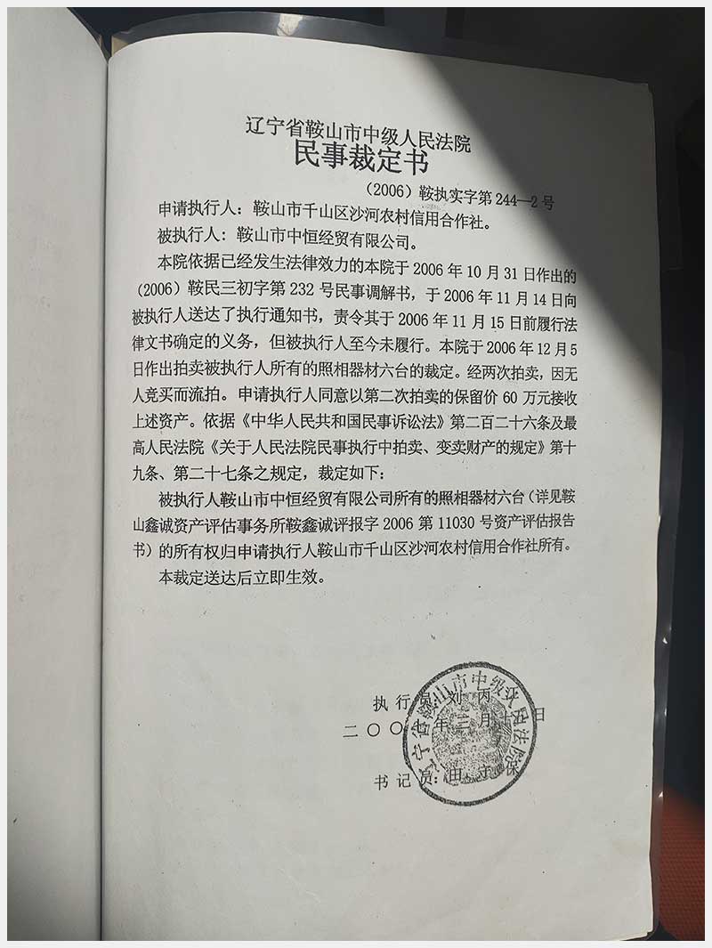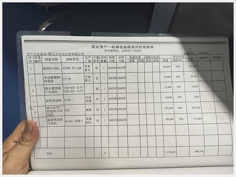 102號 鞍山市中恒經(jīng)貿(mào)有限公司機器設備