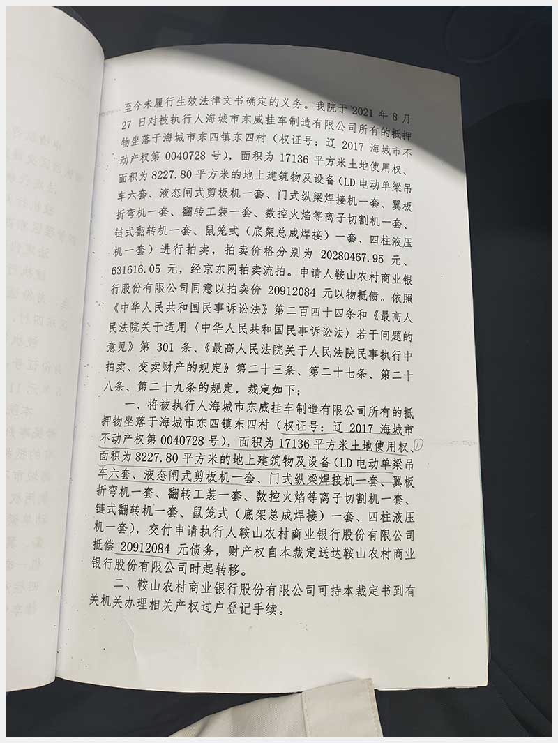 名稱:海城市東四鎮(zhèn)東四村房產(chǎn)、土地使用權(quán)及設(shè)備 面積:房產(chǎn):8259.19㎡;土地:17136㎡;設(shè)備:14套 瀏覽次數(shù):407