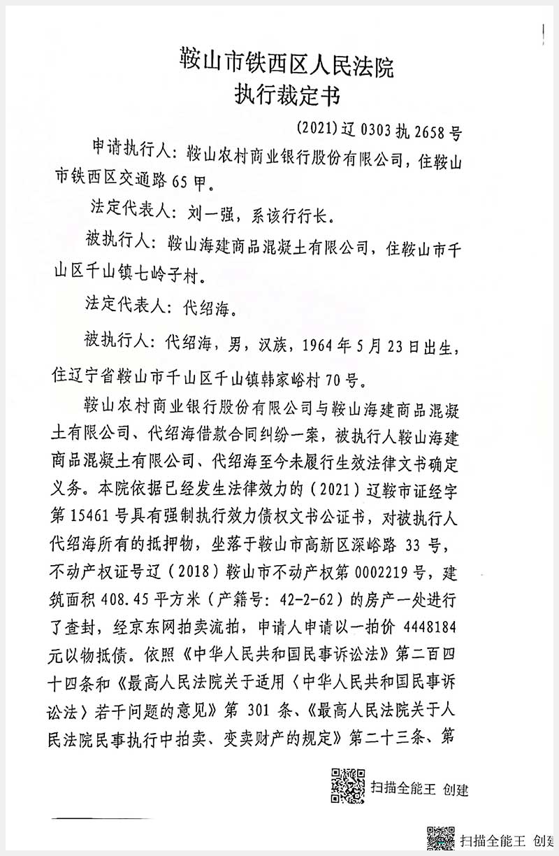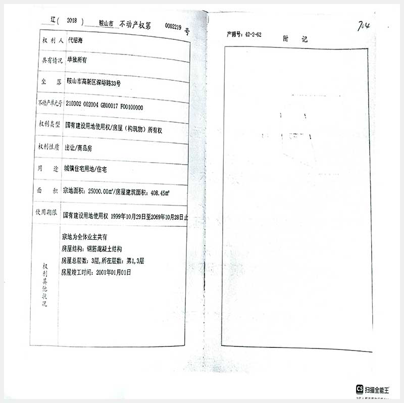 名稱:鞍山市高新區(qū)深峪路33號(hào)房產(chǎn) 面積:408.45㎡ 瀏覽次數(shù):440