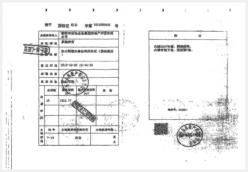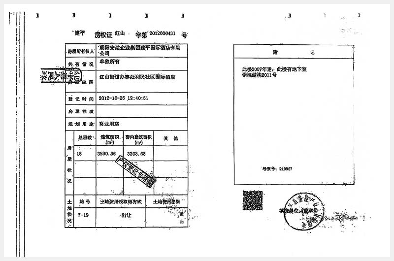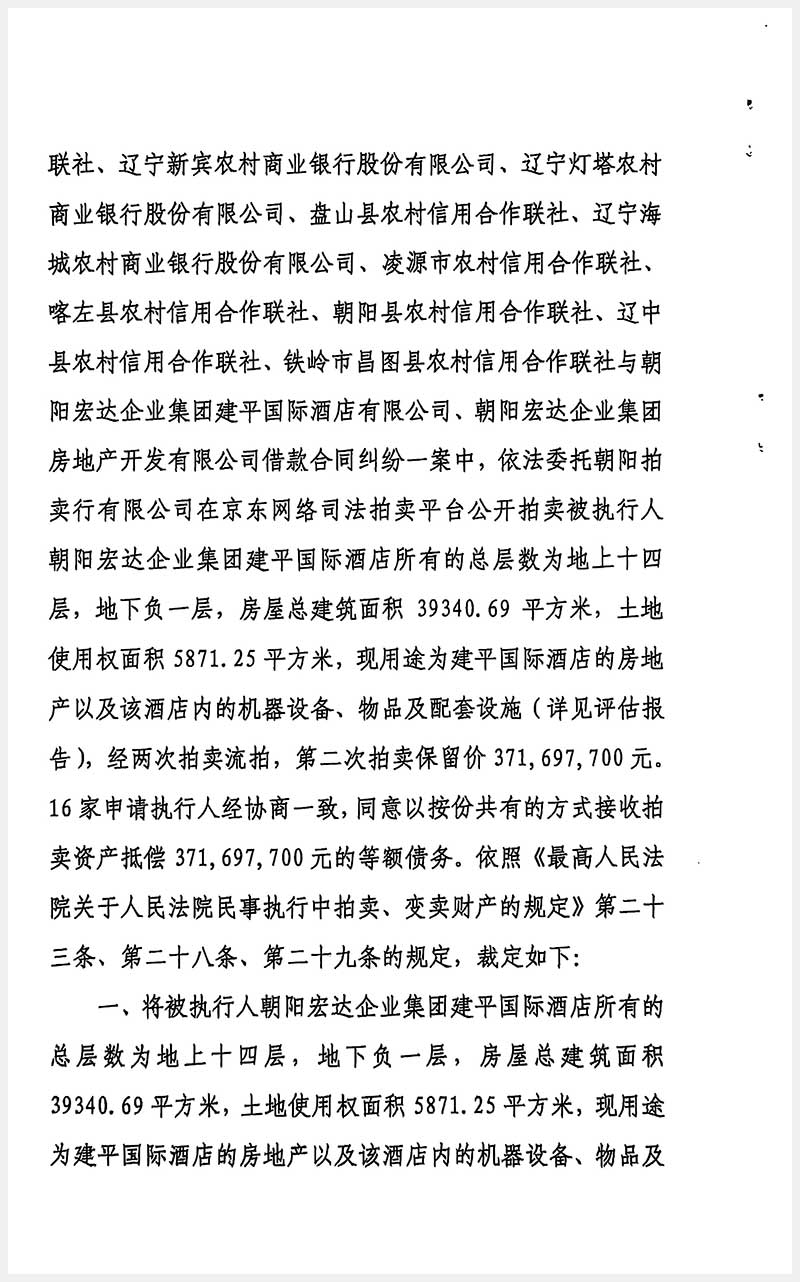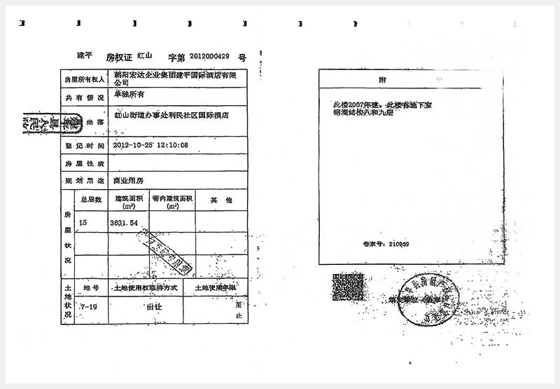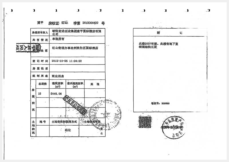 274號 朝陽市建平縣紅山街道辦事處利民社區(qū)國際酒店房產(chǎn)及土地使用權(quán)