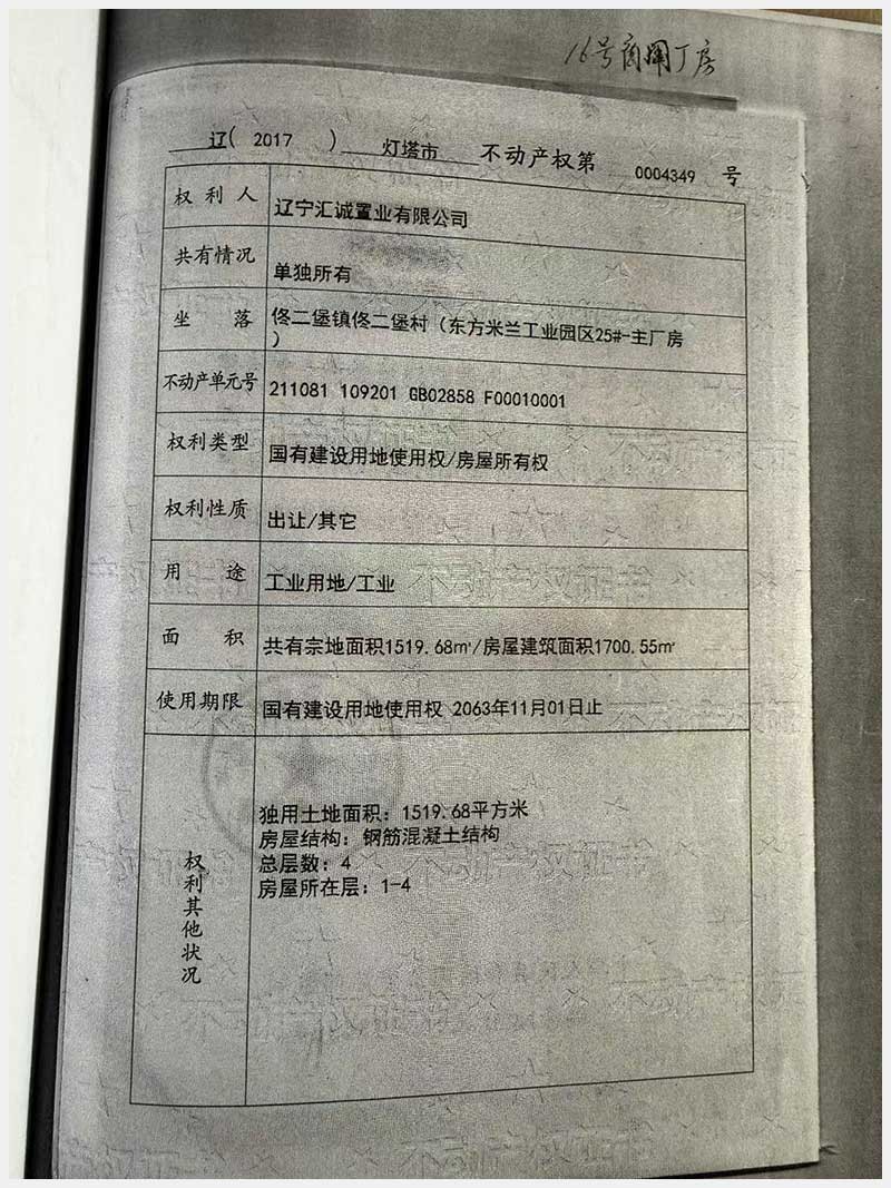 98號 燈塔市佟二堡鎮(zhèn)佟二堡村東方米蘭工業(yè)園區(qū)25#房產(chǎn)及土地使用權