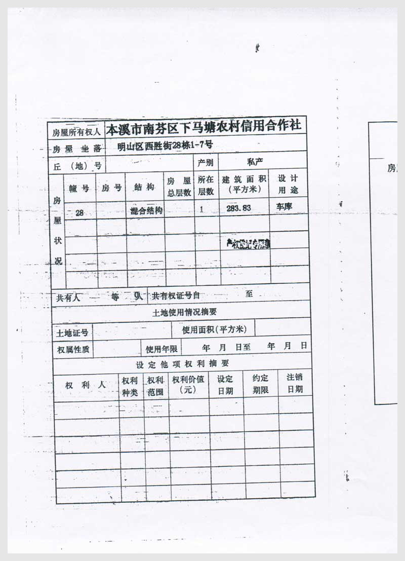 名稱:本溪市明山區(qū)西勝街28棟1-7號(hào)房產(chǎn) 面積:283.83㎡ 瀏覽次數(shù):1797