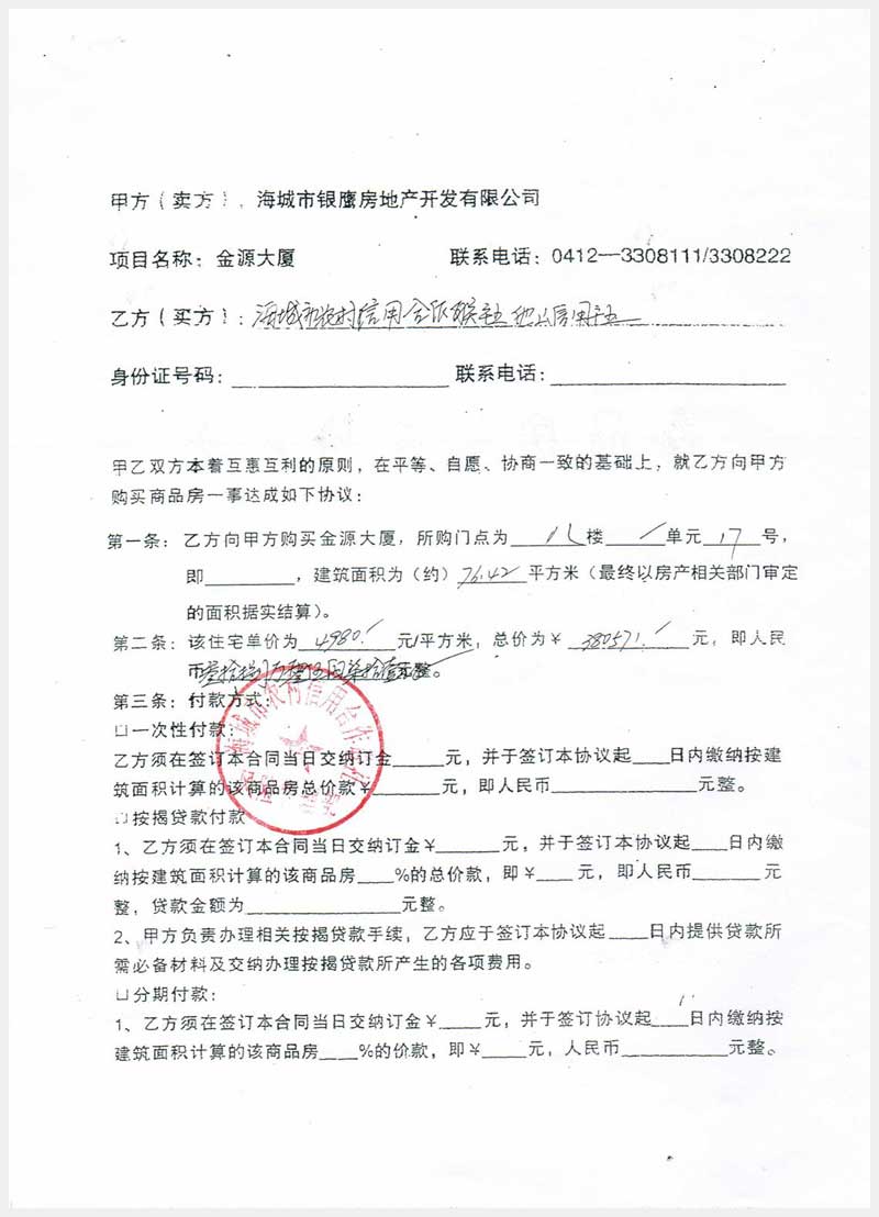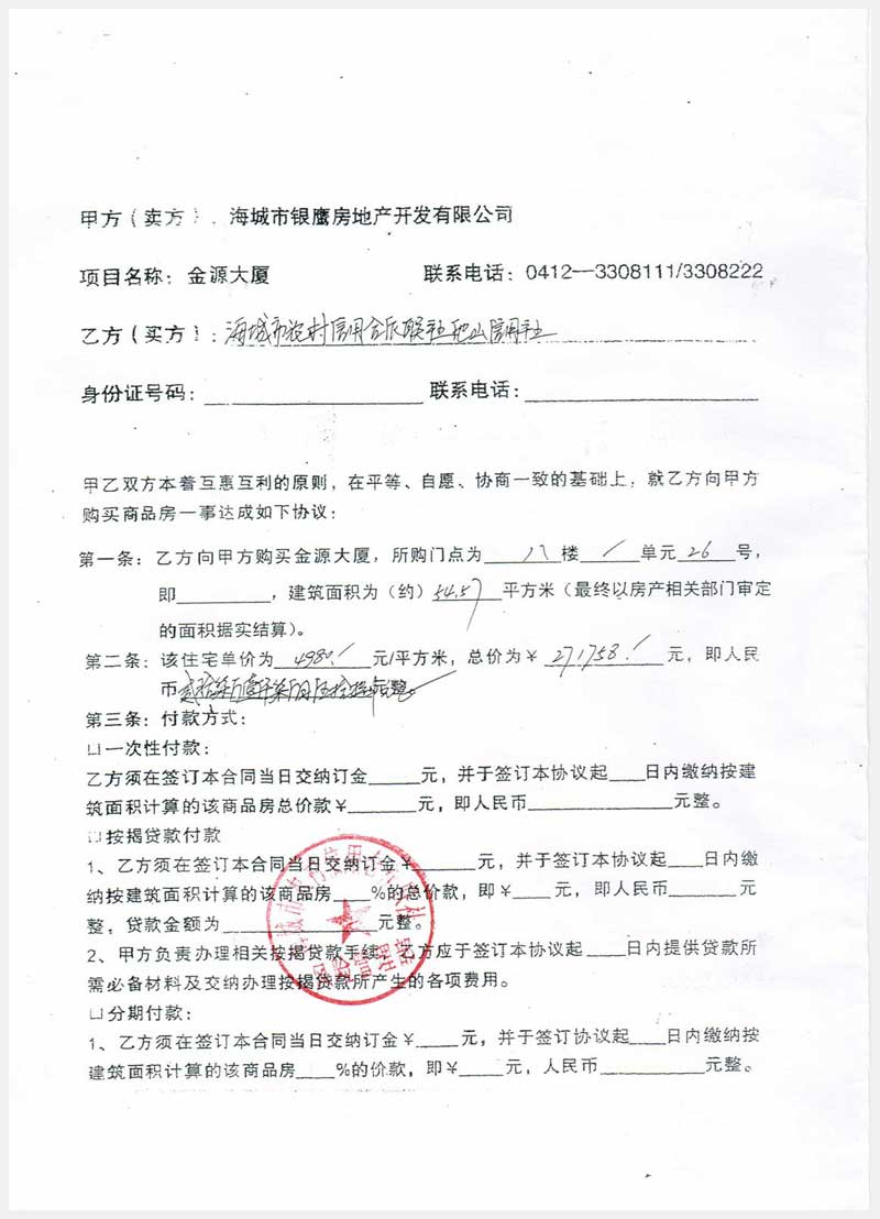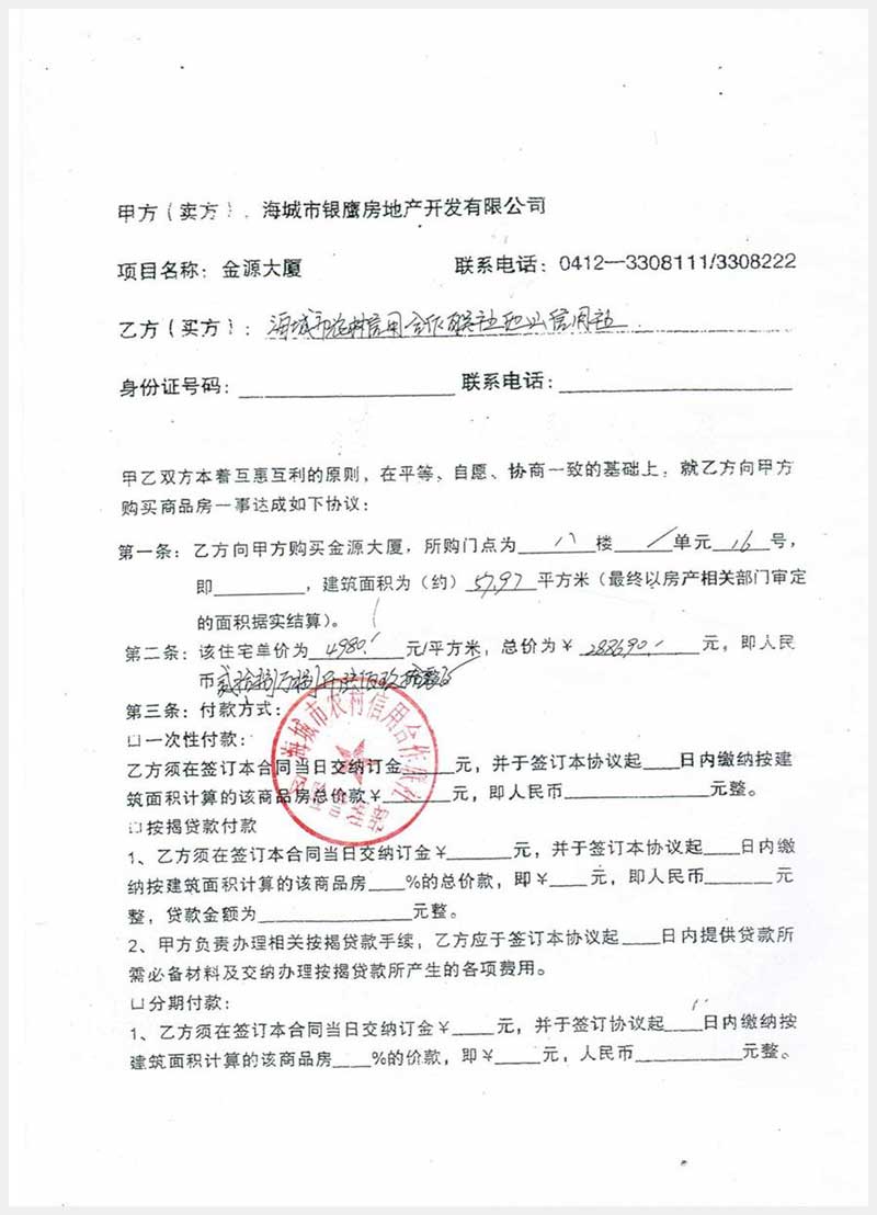 100號 海城市站前金源大廈8層7個房間