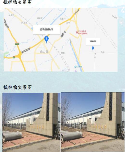 抵押物位于盤(pán)錦市雙臺(tái)子區(qū)盤(pán)山縣,交通便利。抵押房產(chǎn)位于抵押土地之上,抵押房產(chǎn)的狀態(tài)較好,從外部觀察為九成新,用途為辦公樓、倉(cāng)儲(chǔ)等。抵押土地為國(guó)有出讓工業(yè)用地,狀態(tài)較好,中間部份大面積空置,地型寬闊規(guī)整,升值空間較大。