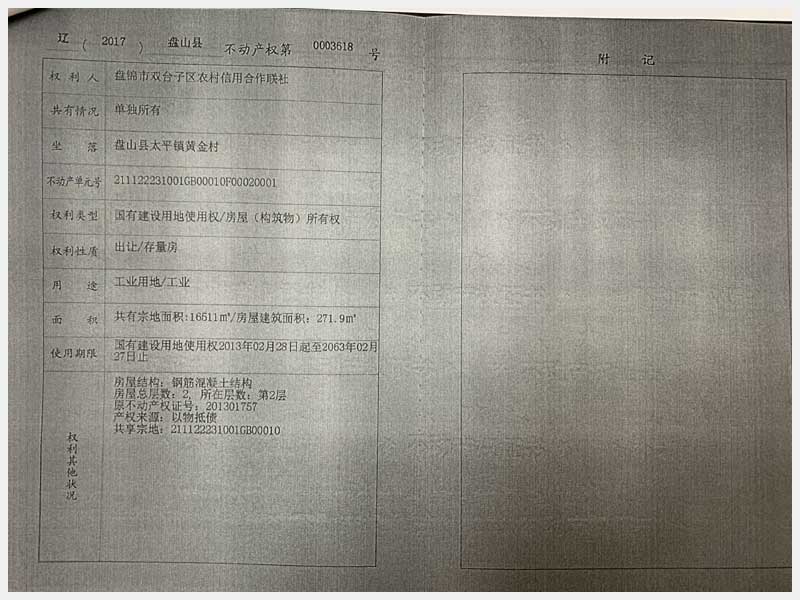 4號 盤錦盤山縣太平鎮(zhèn)黃金村房產(chǎn)及土地使用權(quán)(盤錦晟新電氣有限公司)