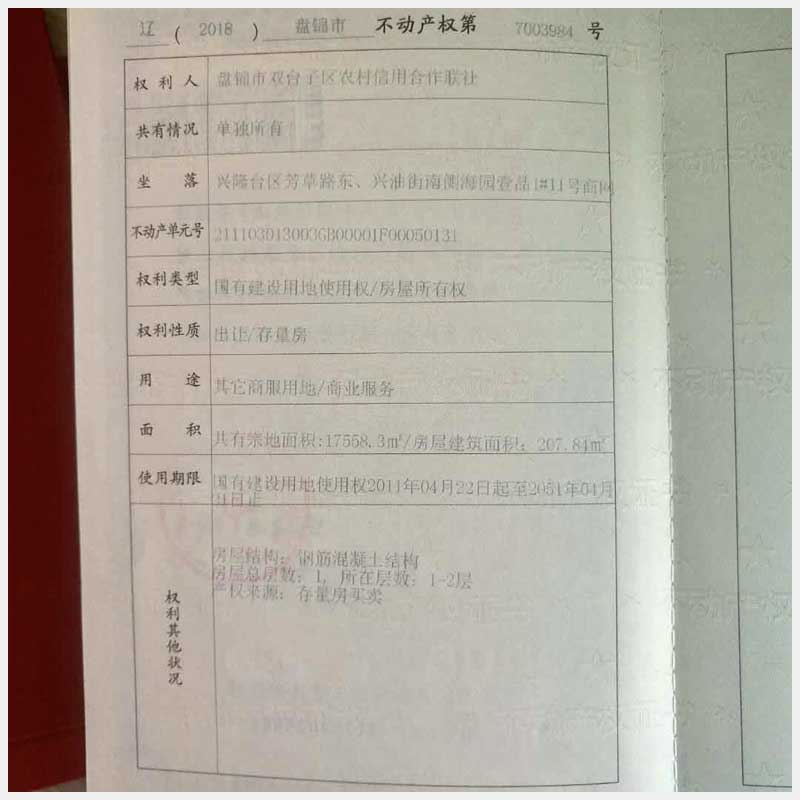17號 盤錦渤海地區(qū)海園商網(wǎng)0008棟11號房產(chǎn)(李陽)