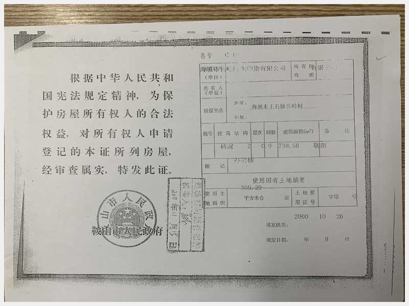 44號(hào) 海城市王石鎮(zhèn)長(zhǎng)嶺村廠房及土地使用權(quán)