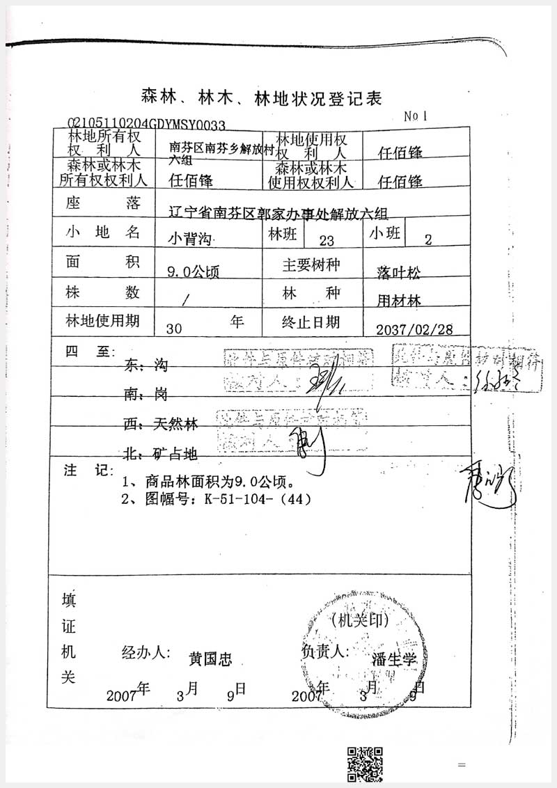 名稱:南芬區郭家街道辦事處解放村林權 面積:30.5公頃 瀏覽次數:1530