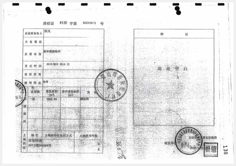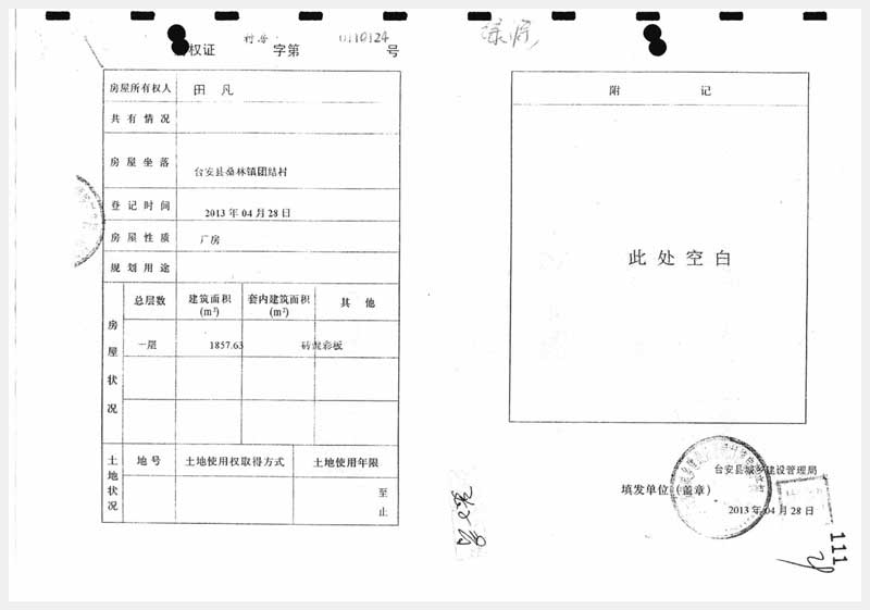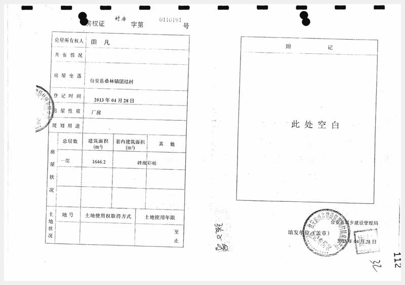 地址:臺安縣桑林鎮(zhèn)團(tuán)結(jié)村 標(biāo)的號:91